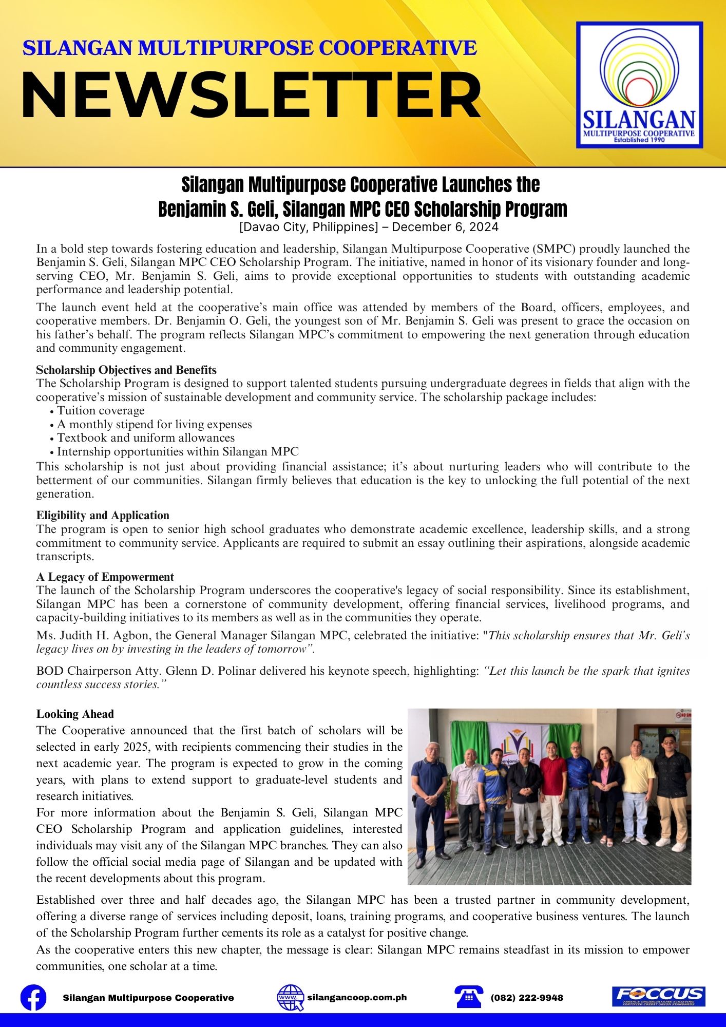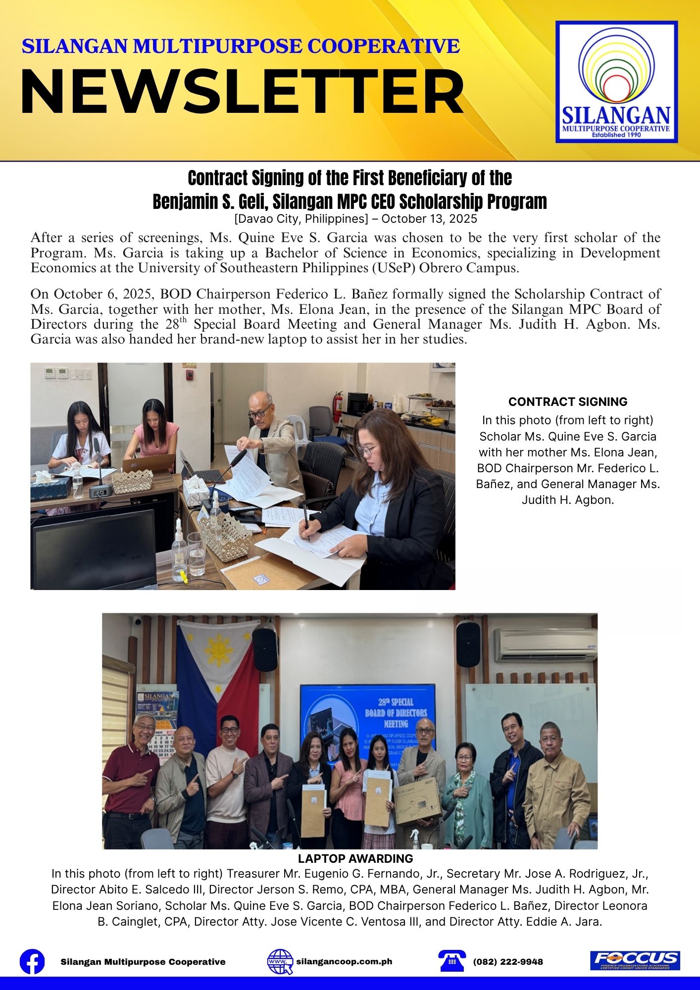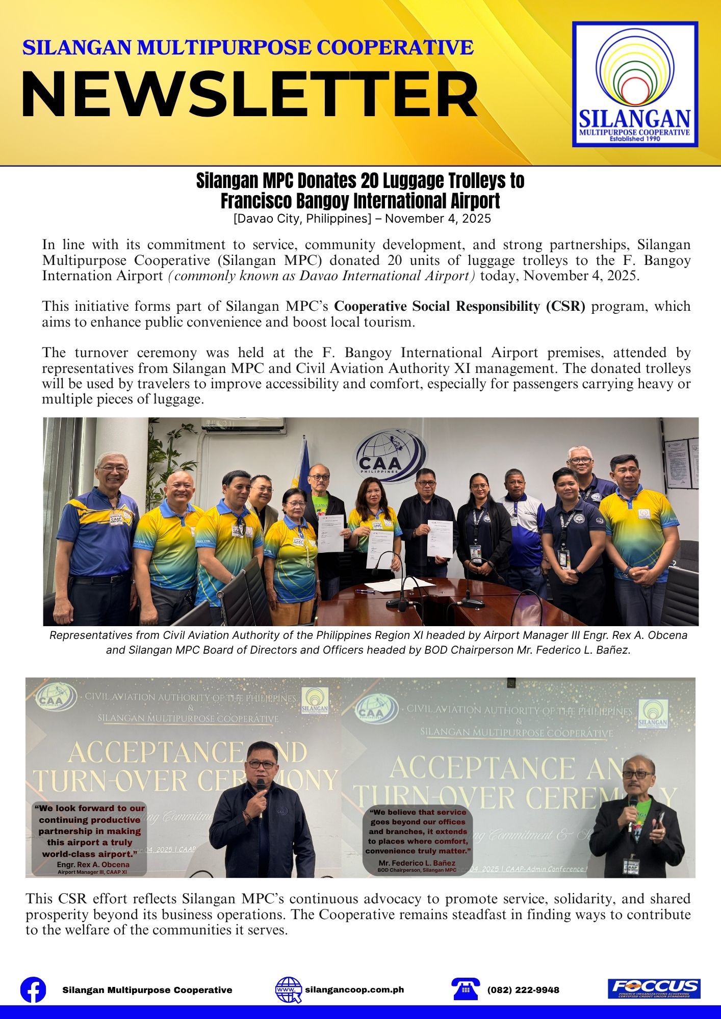 A homegrown cooperative in Davao City, SILANGAN has been a 3-year recipient of the "Most Outstanding Cooperative for Large Category" in the city, putting it in the Hall of Fame.